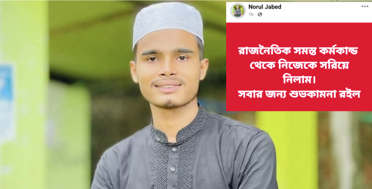 ঢাকা, ৩০ নভেম্বর ২০২৫: জুলাই গণঅভ্যুত্থানের পর রাজনীতিতে যুক্ত হয়ে দ্রুতই জাতীয়তাবাদী গণতান্ত্রিক পরিষদ (এনসিপি) ও ছাত্রশক্তির পরিচিত মুখ হয়ে ওঠা মো. জাবেদ সকল রাজনৈতিক প্ল্যাটফর্ম থেকে সরে দাঁড়ানোর ঘোষণা দিয়েছেন। ব্যক্তিগত ও পারিবারিক কারণেই তিনি এই সিদ্ধান্ত নিয়েছেন বলে আজ (৩০ নভেম্বর) এক বিবৃতিতে জানান।