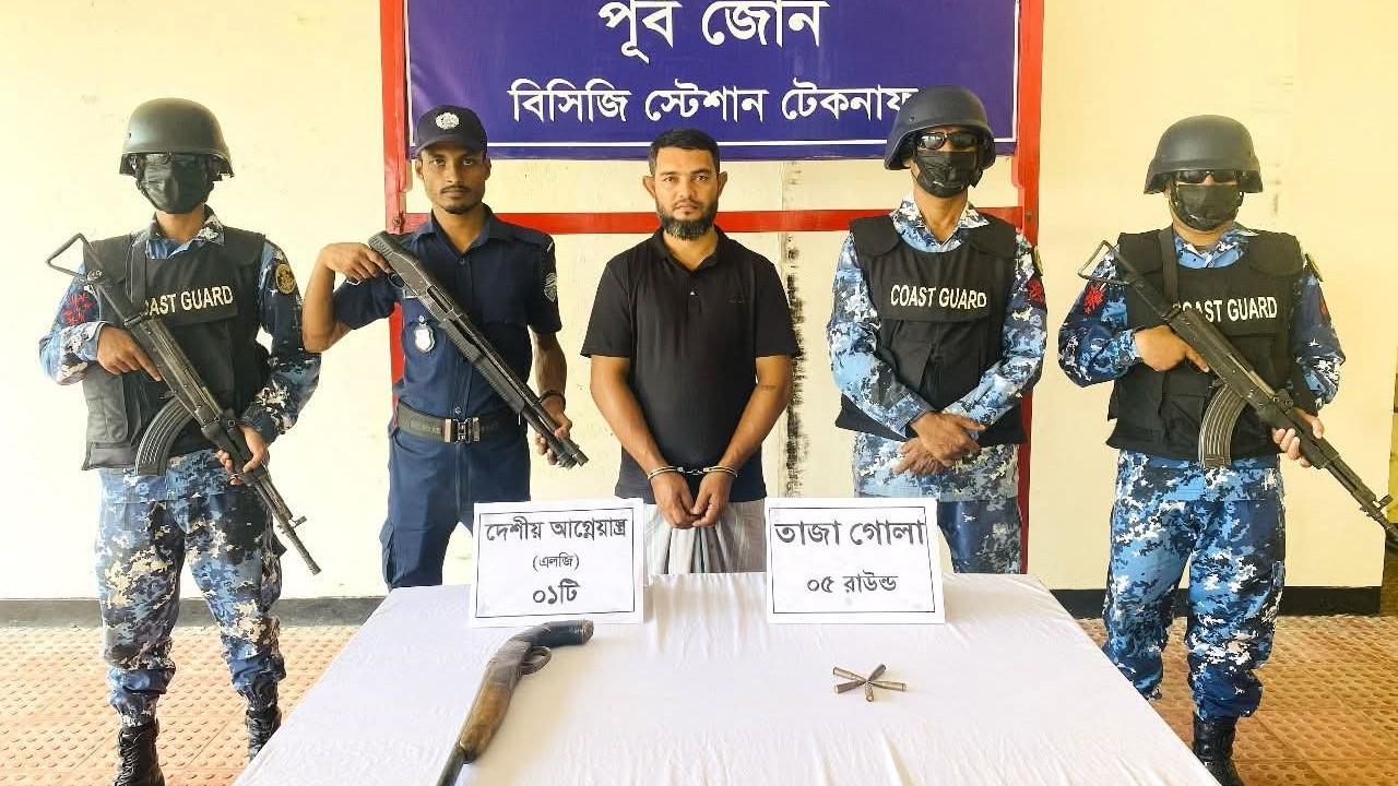 কক্সবাজারের টেকনাফে কোস্ট গার্ড ও পুলিশের যৌথ অভিযানে একটি দেশীয় আগ্নেয়াস্ত্র ও ৫ রাউন্ড তাজা গুলিসহ এক কুখ্যাত দুষ্কৃতিকারীকে আটক করা হয়েছে।