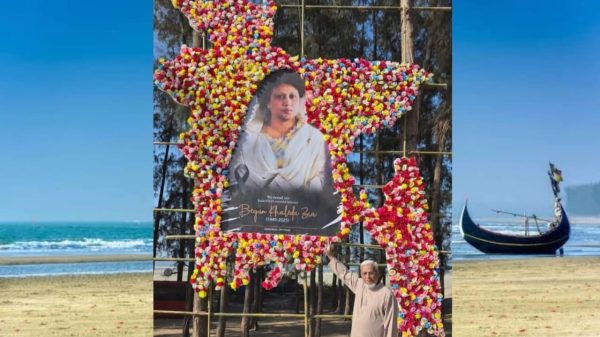 কক্সবাজারের উখিয়া উপজেলার সোনারপাড়া বিচে ফুল দিয়ে বাংলাদেশের মানচিত্র এঁকে সাবেক প্রধানমন্ত্রী ও বিএনপি চেয়ারপারসন বেগম খালেদা জিয়ার প্রতি ব্যতিক্রমধর্মী শ্রদ্ধা জানিয়েছে বাংলাদেশ জাতীয়তাবাদী দল বিএনপি। শুক্রবার (২ জানুয়ারি) কক্সবাজার–টেকনাফ