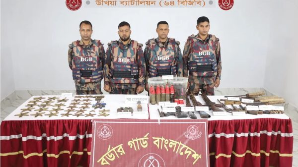 টেকনাফ উপজেলার হ্নীলা ইউনিয়নের রঙ্গীখালী এলাকার গহীন পাহাড় থেকে বিপুল পরিমাণ আগ্নেয়াস্ত্র, গোলাবারুদ, মর্টারের শেল, হ্যান্ড গ্রেনেড ও বোমা তৈরির উপকরণ উদ্ধার করেছে বর্ডার গার্ড বাংলাদেশ (বিজিবি)। উখিয়া ব্যাটালিয়ন (৬৪