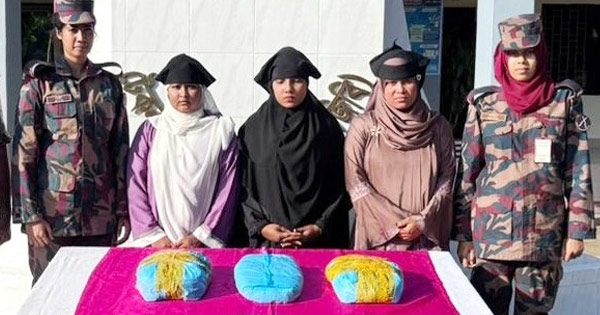কক্সবাজারের টেকনাফের শাহপরীর দ্বীপ থেকে সেন্টমার্টিনগামী নৌযানে যাত্রীর বেশে মাদক পাচারকালে ৩ কেজি ৭০০ গ্রাম গাঁজাসহ তিন নারীকে গ্রেপ্তার করেছে বিজিবি। গ্রেপ্তাররা হলেন, সেন্টমার্টিন আজু মিয়ার কন্যা রুবায়দা (১৮), মৃত