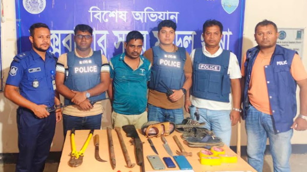 কক্সবাজার সদর মডেল থানা পুলিশের বিশেষ অভিযানে দেশীয় তৈরী অস্ত্রসহ ডাকাত দলের সদস্যকে গ্রেফতার করেছে পুলিশ। মঙ্গলবার (১৬ সেপ্টেম্বর) ভোর রাত সাড়ে ৩টার দিকে কক্সবাজার পৌরসভার ৬নং ওয়ার্ডের সাহিত্যিকাপল্লী