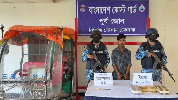 কক্সবাজারের টেকনাফে প্রায় ১ কোটি ৫০ লক্ষ টাকা মূল্যের ৩০ হাজার পিস ইয়াবা ও একটি ইজিবাইকসহ এক মাদক পাচারকারীকে আটক করেছে কোস্ট গার্ড।   সোমবার (১৮ আগস্ট) দুপুর ১টার দিকে