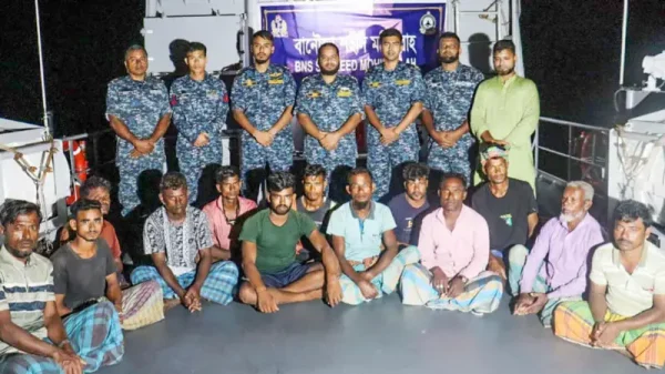 বঙ্গোপসাগরে বিকল হয়ে ভাসতে থাকা একটি মাছ ধরার ট্রলারসহ ১৩ জেলেকে উদ্ধার করেছে নৌবাহিনী। শনিবার টহলের সময় নৌবাহিনীর জাহাজ ‘বানৌজা শহীদ মহিবুল্লাহ’ কুতুবদিয়া লাইট হাউস থেকে প্রায় ২০ মাইল দূরে