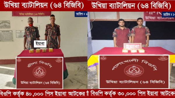 কক্সবাজারের উখিয়ায় বর্ডার গার্ড বাংলাদেশ (বিজিবি) কর্তৃক পরিচালিত পৃথক দুটি অভিযানে ৭০ হাজার পিস ইয়াবা ট্যাবলেট উদ্ধার করা হয়েছে। সোমবার (১৩ অক্টোবর) রাত ও মঙ্গলবার (১৪ অক্টোবর) ভোরে পালংখালী