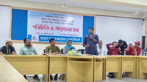 কক্সবাজারের মানবিক সংগঠন ভয়েস অব কক্সবাজার ভোলান্টিয়ার্স-এর উপদেষ্টা, কার্যনির্বাহী ও সাধারণ পরিষদের পরিচিতি সভা অনুষ্ঠিত হয়েছে। শনিবার (১১ অক্টোবর ২০২৫) বিকেল ৩টায় কক্সবাজার পৌরসভার হলরুমে এ সভা অনুষ্ঠিত হয়। উপদেষ্টা