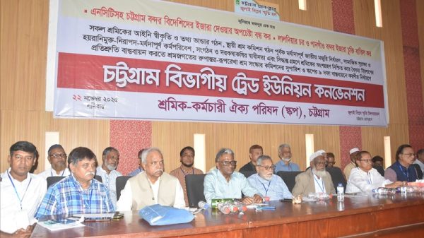 চট্টগ্রাম বন্দরের বিভিন্ন স্থাপনা বিদেশি প্রতিষ্ঠানের কাছে ইজারা দেওয়ার সিদ্ধান্ত বাতিলের দাবিতে আগামী বুধবার (২৬ নভেম্বর) সকাল ১০টা থেকে দুপুর ১টা পর্যন্ত বন্দরের সব প্রবেশমুখে সর্বাত্মক অবরোধ কর্মসূচি ঘোষণা করেছে