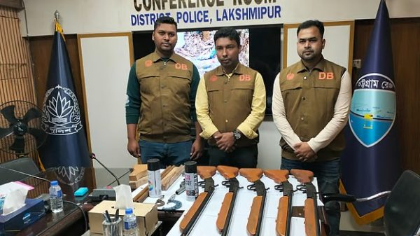 নোয়াখালীর বেগমগঞ্জের একটি কবরস্থানের ঝোপের ভেতর থেকে একনলা বন্দুক, এলজিসহ ছয়টি অস্ত্র উদ্ধার করেছে পুলিশ। বেগমগঞ্জের এলাকাটি লক্ষ্মীপুরের চন্দ্রগঞ্জের সীমানাসংলগ্ন। আজ রোববার সকালে গোপন সংবাদের ভিত্তিতে লক্ষ্মীপুরের চন্দ্রগঞ্জ থানা ও