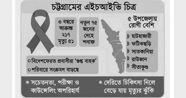 চট্টগ্রামে এইচআইভি (এইডস) সংক্রমণের বড় উৎস হিসেবে বিদেশফেরত প্রবাসী ও তাদের পরিবার শনাক্ত হয়েছে। চমেক হাসপাতালের এআরটি সেন্টারের তিন বছরের তথ্য অনুযায়ী, ২০২৩-২০২৫ সালের মধ্যে ২১৭ জন নতুন রোগী শনাক্ত