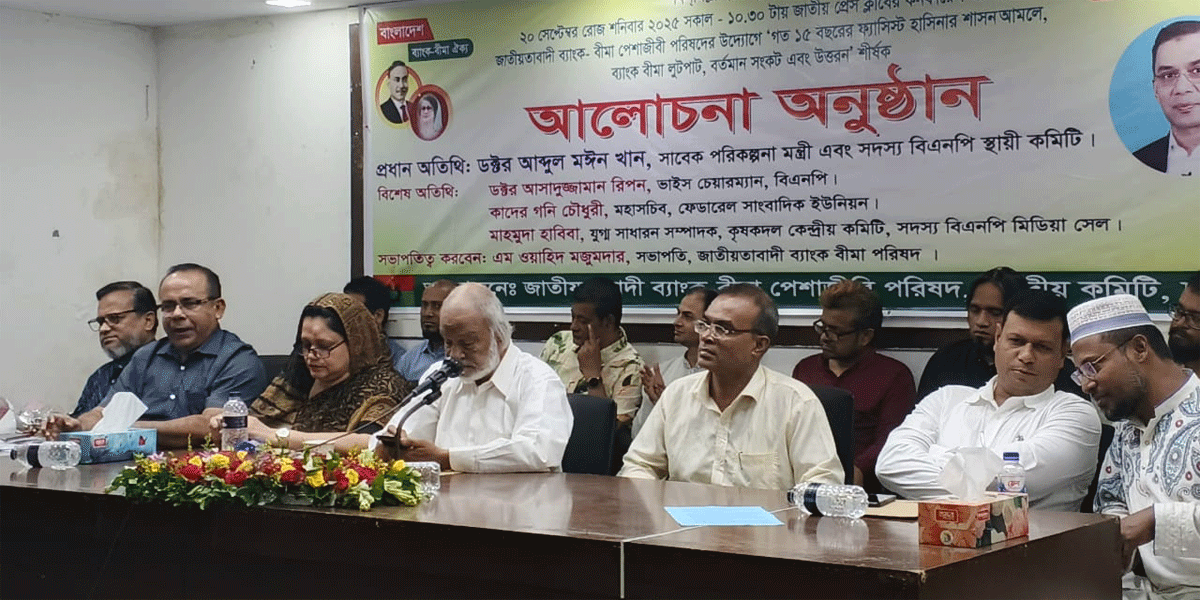শনিবার (২০ সেপ্টেম্বর) জাতীয় প্রেস ক্লাবের জহুর হোসেন চৌধুরী হলে ‘গত ১৫ বছরের ফ্যাসিস্ট হাসিনার শাসনামলে ব্যাংক বীমা লুটপাট বর্তমান সংকট এবং উত্তরণ’ শীর্ষক আলোচনা সভায় তিনি এসব কথা বলেন। এ সভা আয়োজন করে জাতীয়তাবাদী ব্যাংক বিমা পেশাজীবী পরিষদ কেন্দ্রীয় কমিটি ঢাকা।