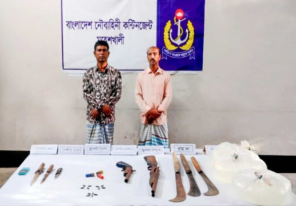 মহেশখালীতে অভিযান চালিয়ে দেশীয় অস্ত্র ও মাদকসহ ২ জনকে আটক করেছে নৌবাহিনী।